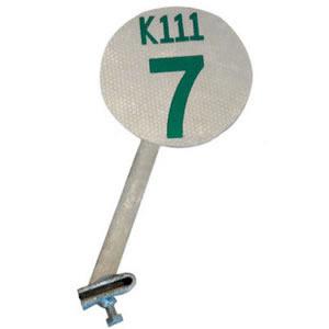 用于指示高速公路之里程。白底绿字。设置于高速公路两侧的立柱上。