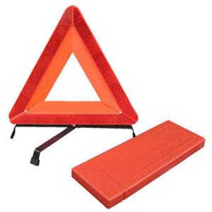 本产品由红色中空正三角回复反射器,荧光器,红色背板,黑色可收放十字形支撑架组成,塑料盒包装,符合GB19151-2003《机动车用三角警告牌》的要求。